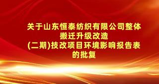 關(guān)于山東恒泰紡織有限公司整體搬遷升級改造 (二期)技改項(xiàng)目環(huán)境影響報(bào)告表的批復(fù)